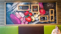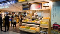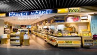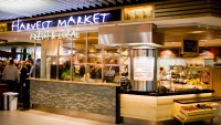 Schiphol International Airport, Amsterdam. A free flowing market style food offer is bright and welcoming. This concept won an award in the New Zealand Retail Interior Association International Division 2013.