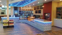 Mediterranean style concept with the use if fresh turquoise and warm timbers. Decorative finishes to the counters and feature ceiling makes this concept striking and inviting.
