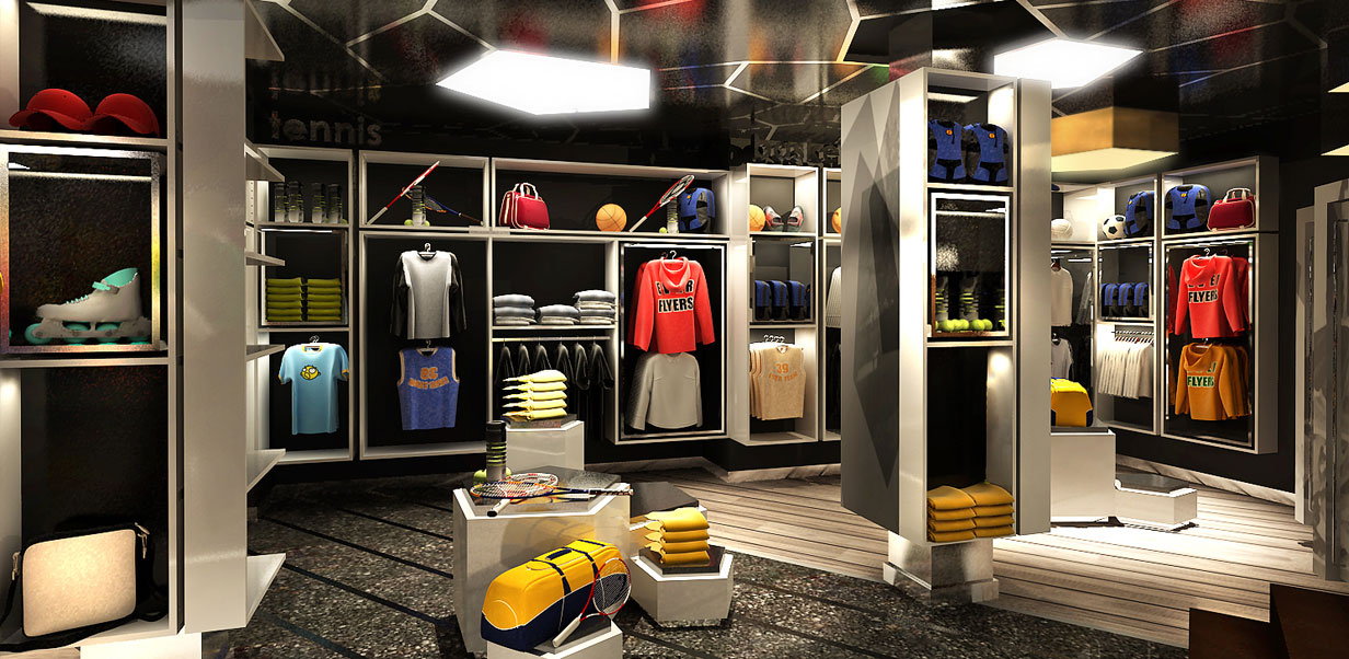 Dubai, Middle East. Sports store developed for a local client for a store and café.